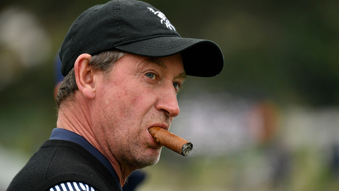 Wayne Gretzky smokes a cigar during AT&T Pebble Beach Pro-Am in Pebble Beach, California, February 8, 2020. (Michael Madrid-USA TODAY SPORTS)