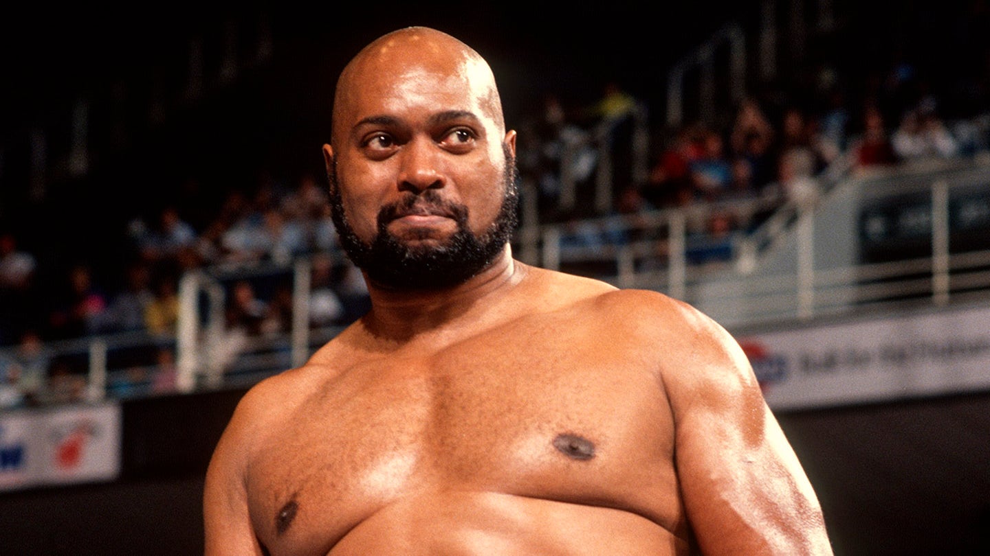 Bad News Brown looks on at the Miami Arena on August 9, 1990 in Miami, Florida. (WWE/WWE via Getty Images)