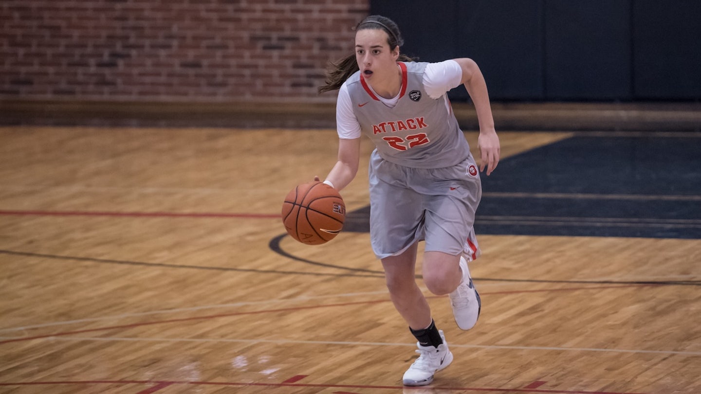 Caitlin Clark of the All Iowa Attack dribbles during an AAU game at the All Iowa Attack Basketball Fieldhouse on April 22, 2017, in Ames, Iowa. (Luke Lu/Diamond Images via Getty Images)