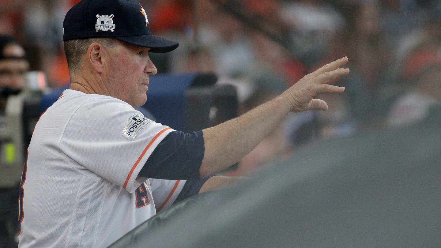 The coach of the first base of Houston Astros, Rich Dauer, # 48, watches play in the second match of the 2017 ASSTROS 2017 ASTROS Baseball series against New York Yankees at Minute Maid Park in Houston on 14 October 2017. (Thomas B. Shea-USA today Sport)