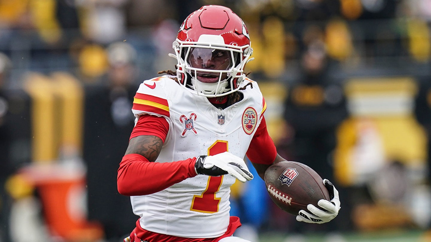 The Kansas City chiefing receiver, Xavier Worthy (1), takes place against the Pittsburgh Steelers during the first half of an NFL football match on Wednesday, December 25, 2024, in Pittsburgh. (AP photo / Matt Freed)