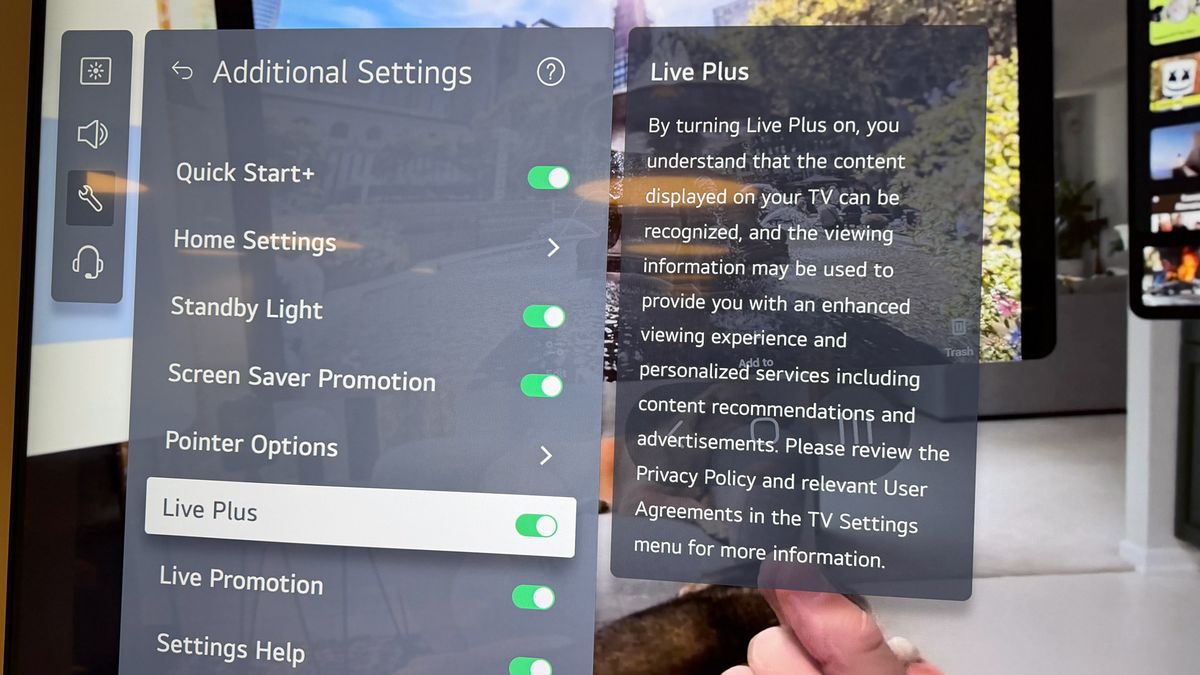 Live Plus is LG’s version of ACR, and as LG describes it, when you enable it, “content displayed on your TV can be recognized and viewing information can be used to provide you with an enhanced viewing experience and personalized services, including content recommendations and advertisements.”